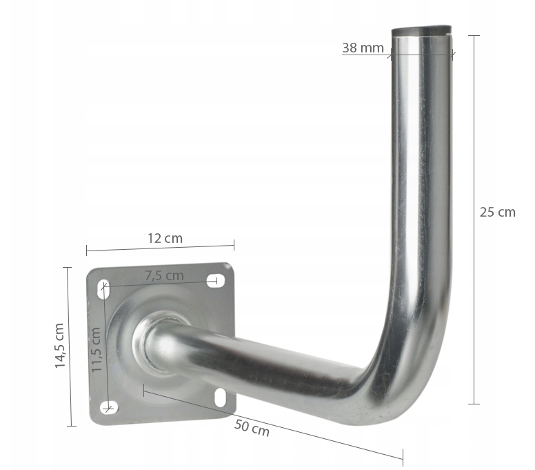 Держатель угловой, легко монтируется, изготовлен из стали. Ручка отличается высоким качеством и эстетикой исполнения. Благодаря использованию этой технологии ручки устойчивы к разрушению и устойчивы к ржавчине, что гарантирует удовлетворение приобретенного товара. Пластиковая крышка предотвращает попадание воды внутрь. Рекомендуется для установки спутниковых панелей и телевизионных антенн наземной. Также доступен в другом размере.