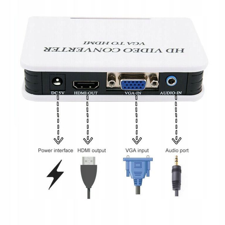 Konwerter pozwala na przekształcenie sygnału analogowego VGA i dźwięku (R/L - kanał prawy i kanał lewy) na sygnał cyfrowy HDMI (z dźwiękiem).