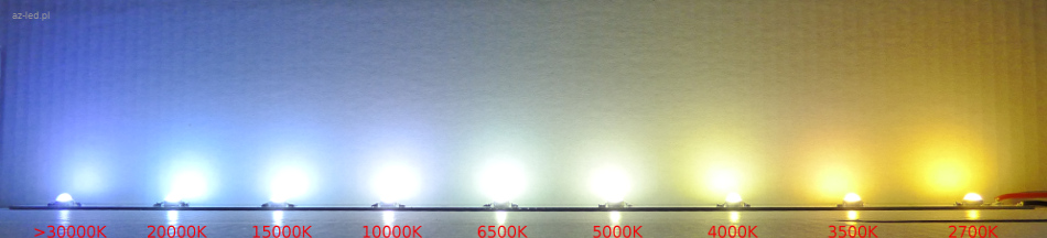 Светодиоды сделаны по новой полупроводниках Epistar 35mil. Этот тип светодиодов из-за идеально подходят для свойства глаз человека является в настоящее время используется наиболее часто. Цвет светодиодов максимально приближена к той, которую дает Солнце в зените. Для этого цвета наше зрение реагирует лучше всего, в области зрения на большое расстояние и распознавания контуров. Кроме того, все дорожные знаки лучше всего отражают именно во всей евро-пе в этом цвете. Из-за этого широко используются в автомобильной промышленности. В аквариумистике выступают как одна из основных составных цветов в nowoczenych лампах LED. Из-за большой коэффициент CRI очень хорошо передает цвета.