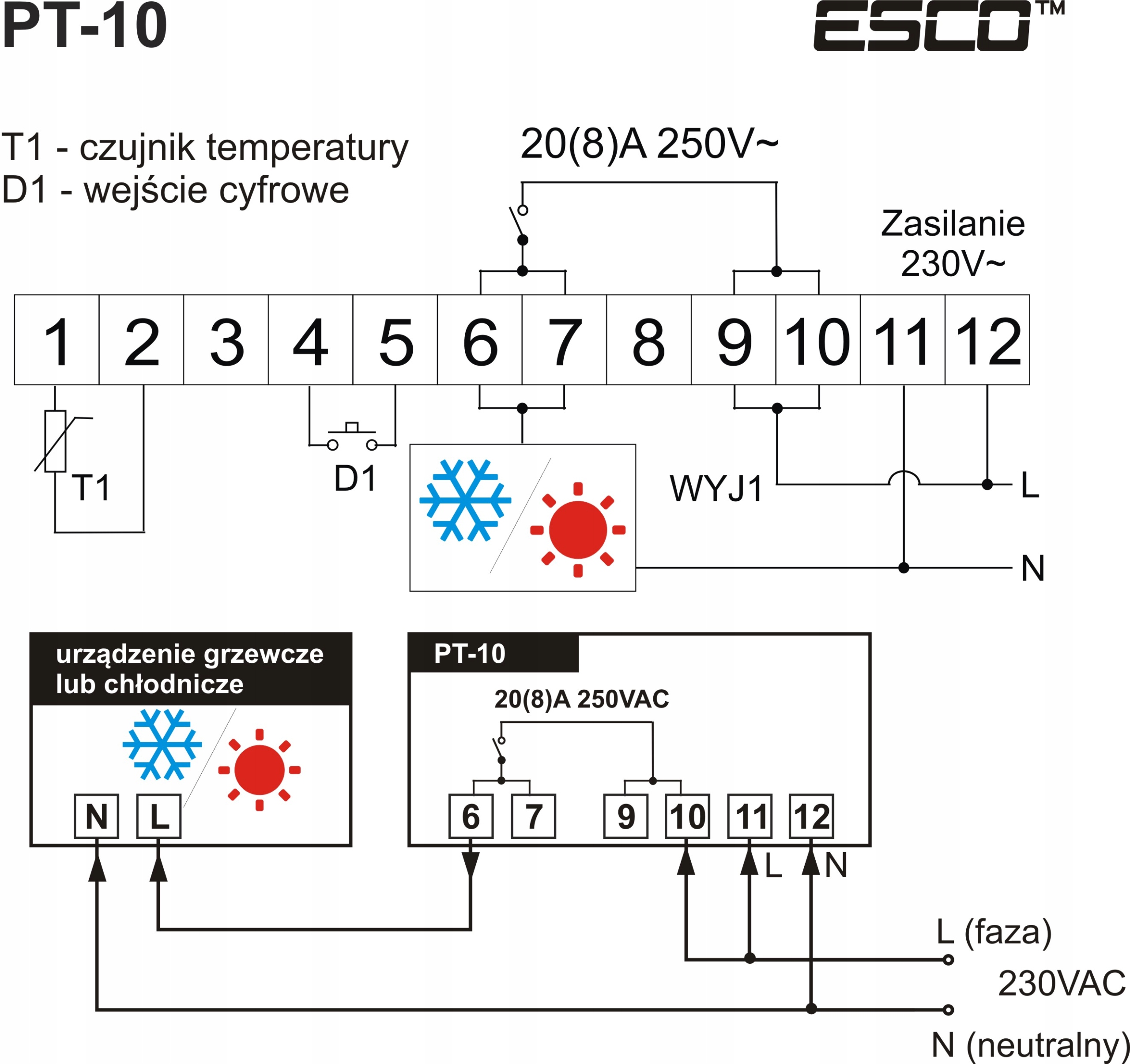 Wyjście regulacyjne: 20A/4,5kW, trwałość 100 tys. cykli