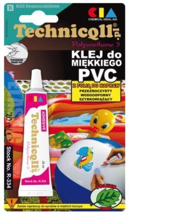 Wodoodporny klej do naprawy cienkościennych materiałów wykonanych z elastycznych tworzyw sztucznych – PVC, poliuretanu, tkanin powlekanych.