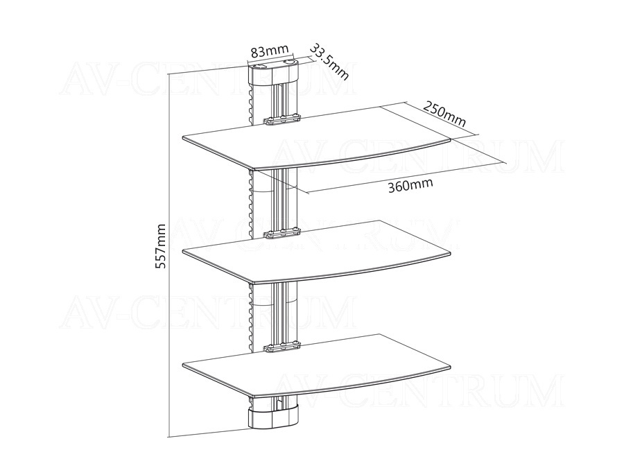 Półka została zaprojektowana dla urządzeń typu DVD, tuner satelitarny. Maksymalna nośność każdej półki to 8 kg.