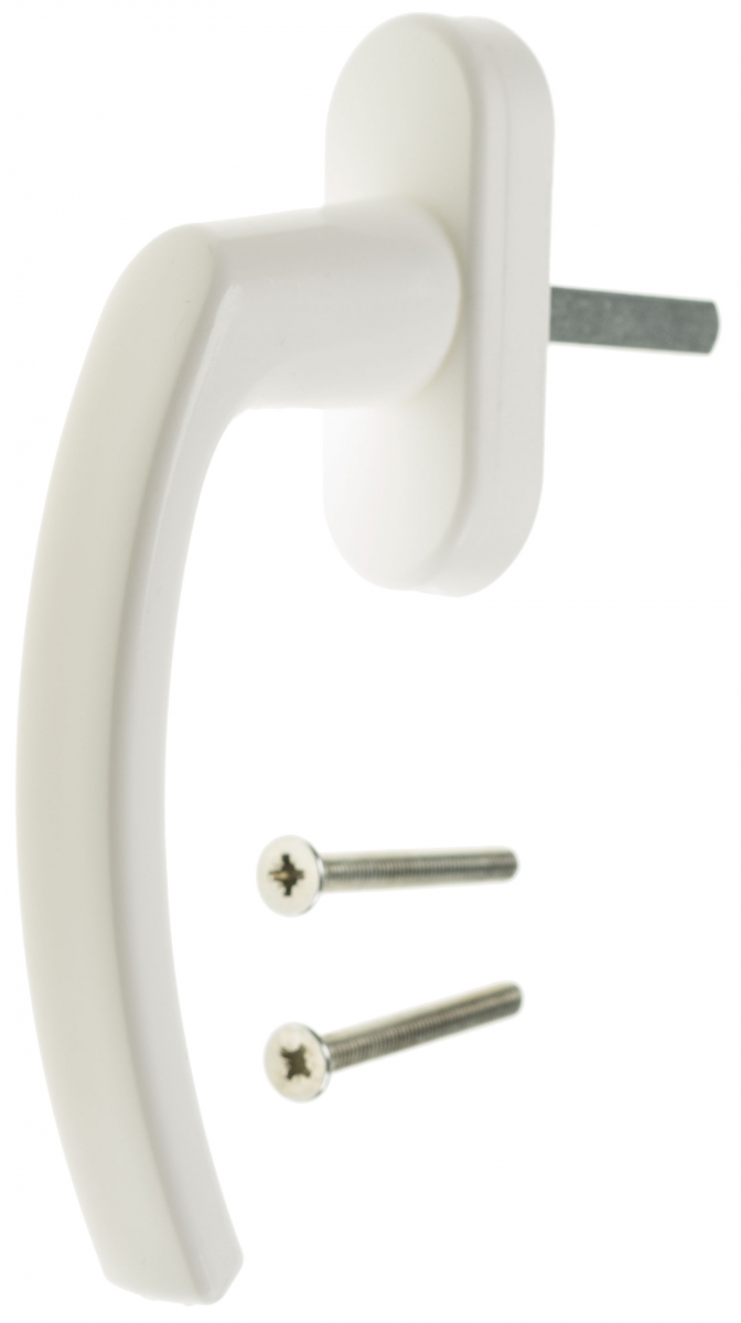 Przedmiotem sprzedaży jest klamka tworzywowa z mocnego tworzywa w kolorze białym.