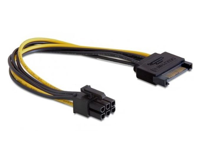Kabel zasilający do podłączania kart graficznych z gniazdem 6PIN PCI-E za pomocą złącza zasilającego SATA 15PIN np. karty graficzne PCI Express.