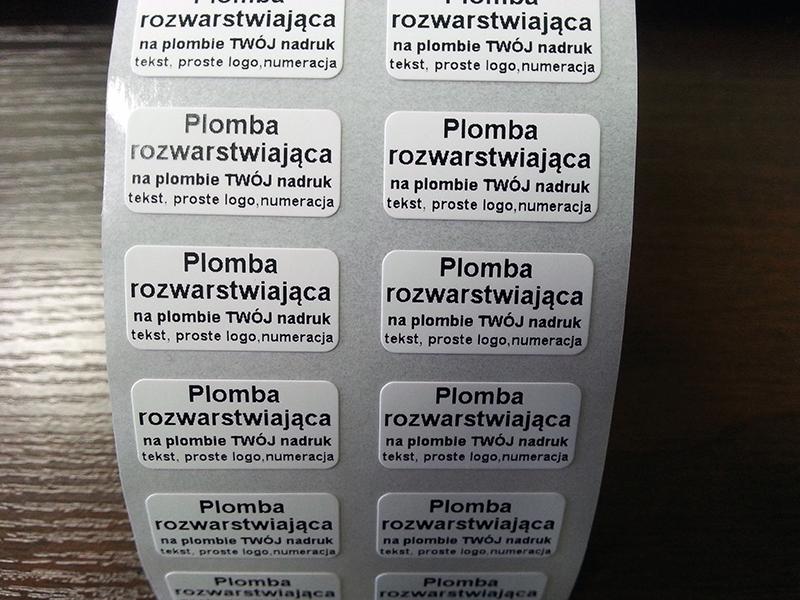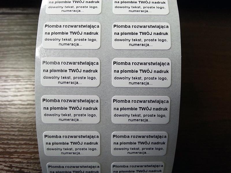 Przykładowe formy nadruku zależne od rozmiaru plomby: datownik, logo, numerator, dowolny tekst, kod kreskowy (zaleca się tylko na plombach o podkładzie białym!), oznaczenia firmy, dane kontaktowe, dane reklamowe, identyfikacja produktów, identyfikacja promocji na produktach, identyfikacja do inwentaryzacji i wiele innych możliwości.