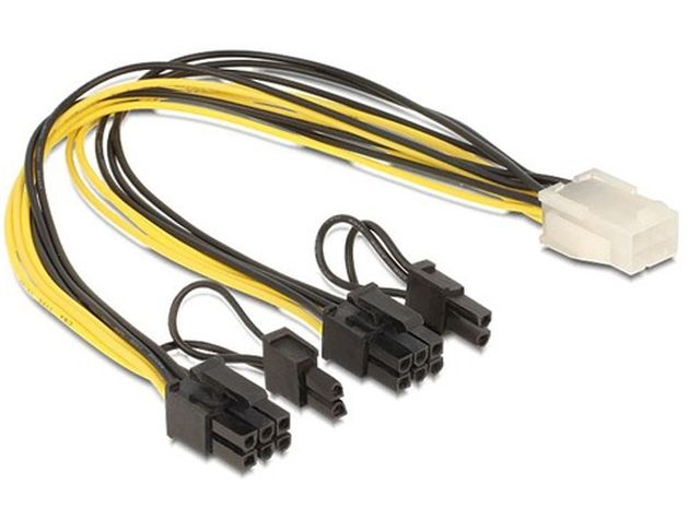 Kabel zasilający może być używany do zasilania kart graficznych, które wymagają wysokiego zużycia energii i mają odpowiednio dwa 8 Pinowe lub 6 Pinowe złącza zasilania. W obu 8 Pinowych wtykach męskich można usunąć dwa piny więc można uzyskać interfejs PCIe 6PIN. Napięcie zasilania 12V. Długość kabla: 24 centymetrów.