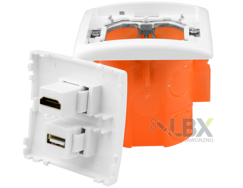 Wysokiej jakości gniazdo USB, HDMI w puszcze podtynkowej pozwoli ukryć każdy przewód w ścianie nadając Twojemu wnętrzu eleganckiego wyglądu. Obudowa koloru białego została wykonana z wytrzymałego i trwałego tworzywa.