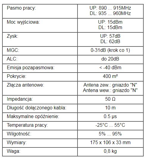 Masz słaby zasięg "komórki" w swojej firmie lub domu? Musisz wychodzić na zewnątrz, aby porozmawiać? Skorzystaj z repetatera zaprojektowanego w celu wzmocnienia sygnału docierającego do telefonów komórkowych wewnątrz budynków. Urządzenie pomoże Ci w bezpieczny sposób wzmocnić sygnał dostępny na zewnątrz budynku i przekazać go do jego wnętrza. W zestawie kabel łączący antenę zewnętrzną z repeaterem o długości 10 metrów.