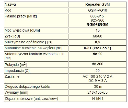 Repeater GSM-VG10 służy do wzmocnienia sygnału GSM i wprowadzeniu go do wewnątrz pomieszczeń. Urządzenie doskonale nadaję się do miejsc gdzie sygnał GSM jest na tyle słaby, że prowadzenie rozmów przez telefon komórkowy jest niemożliwy. Przykładem może być miejsce położone daleko od nadajnika lub budynek z grubymi murami, piwnicami użytkowymi (kawiarnie) lub nowoczesnymi oknami których szyby kryte są związkami metalicznymi.