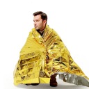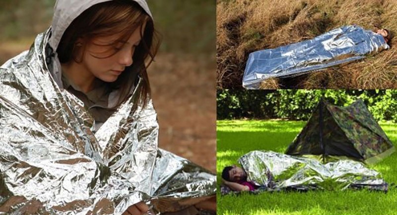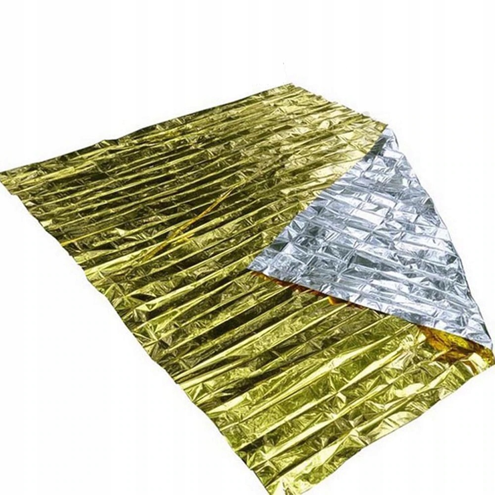 Сторона золотого цвета должна быть со стороны тела, отражение солнечных лучей не позволяет телу перегреваться.