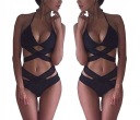 Гора о треугольный разрез с сексуальными вырезами и лямками, завязанными вокруг шеи. Трусики о нежно повышенное состояние с декоративным поясом на талии.