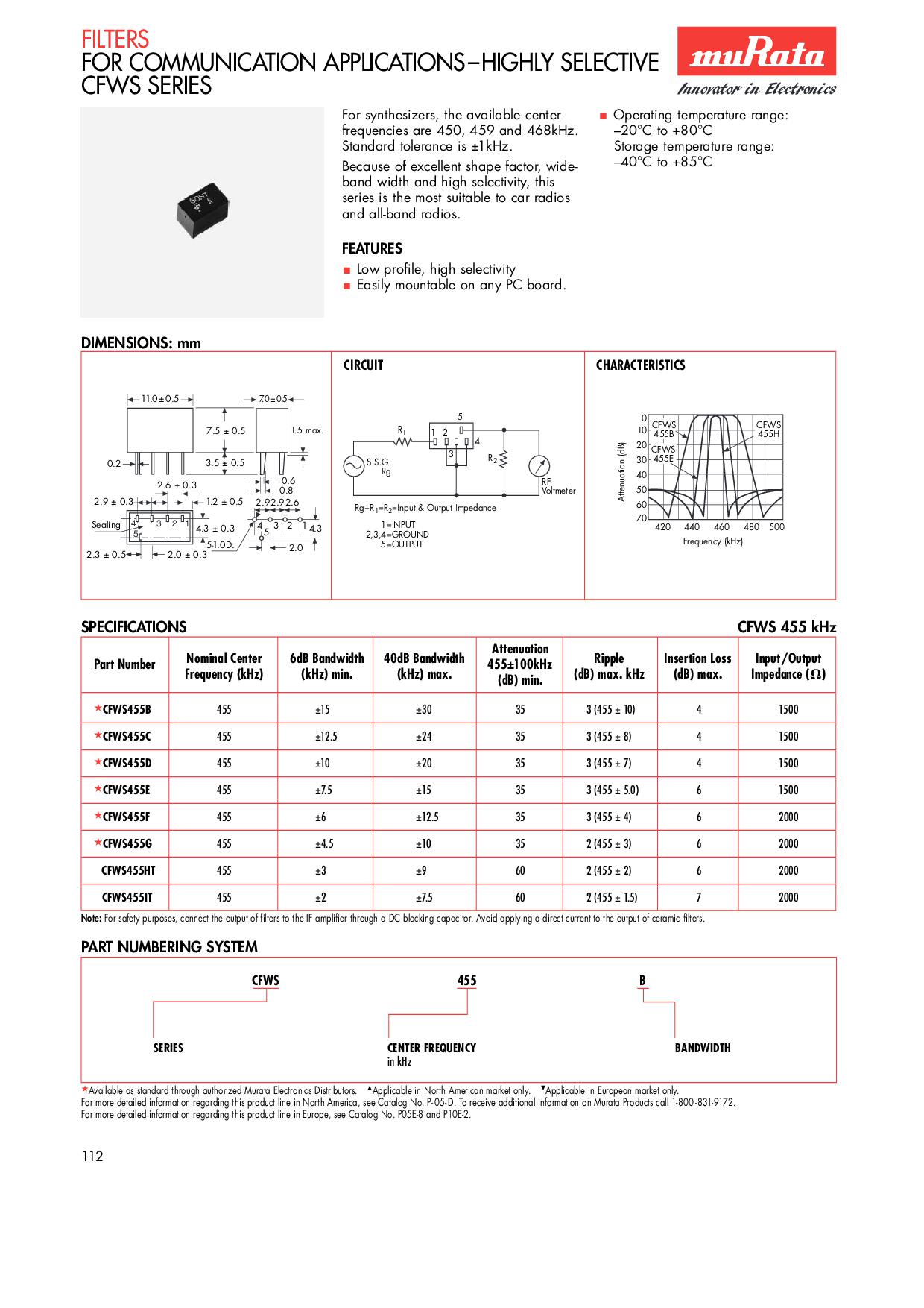 Filtr II pośredniej częstotliwości 455kHz - muRata 455 HT 3kHz