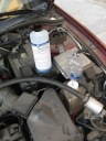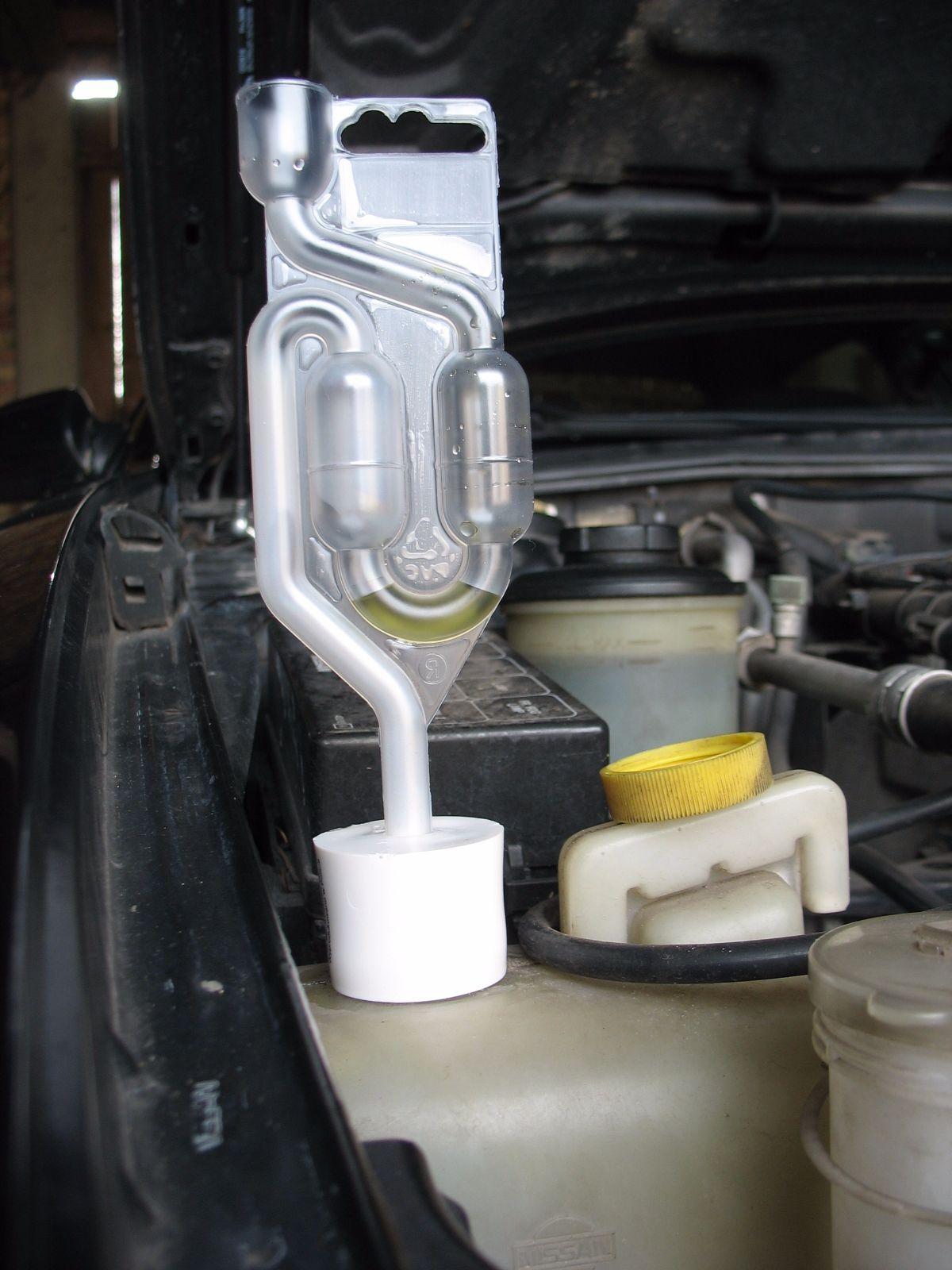 На фото видно изменение цвета жидкости реакционного, с синего на желтый в двигателе бензиновым\СУГ - означает поврежденную прокладку головки блока или головки