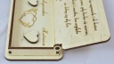 Przepięknie grawerowane głęboko laserem i wycięte ze sklejki pudełko na obrączki ślubne. Głębokie i wyraźne grawery gają gwarancję, że napsy nie wyblakną po jakimś czasie.