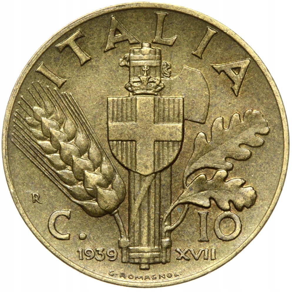 Moneta - Włochy - Wiktor Emanuel III - 10 Centesimi 1939 - MOSIĄDZ.