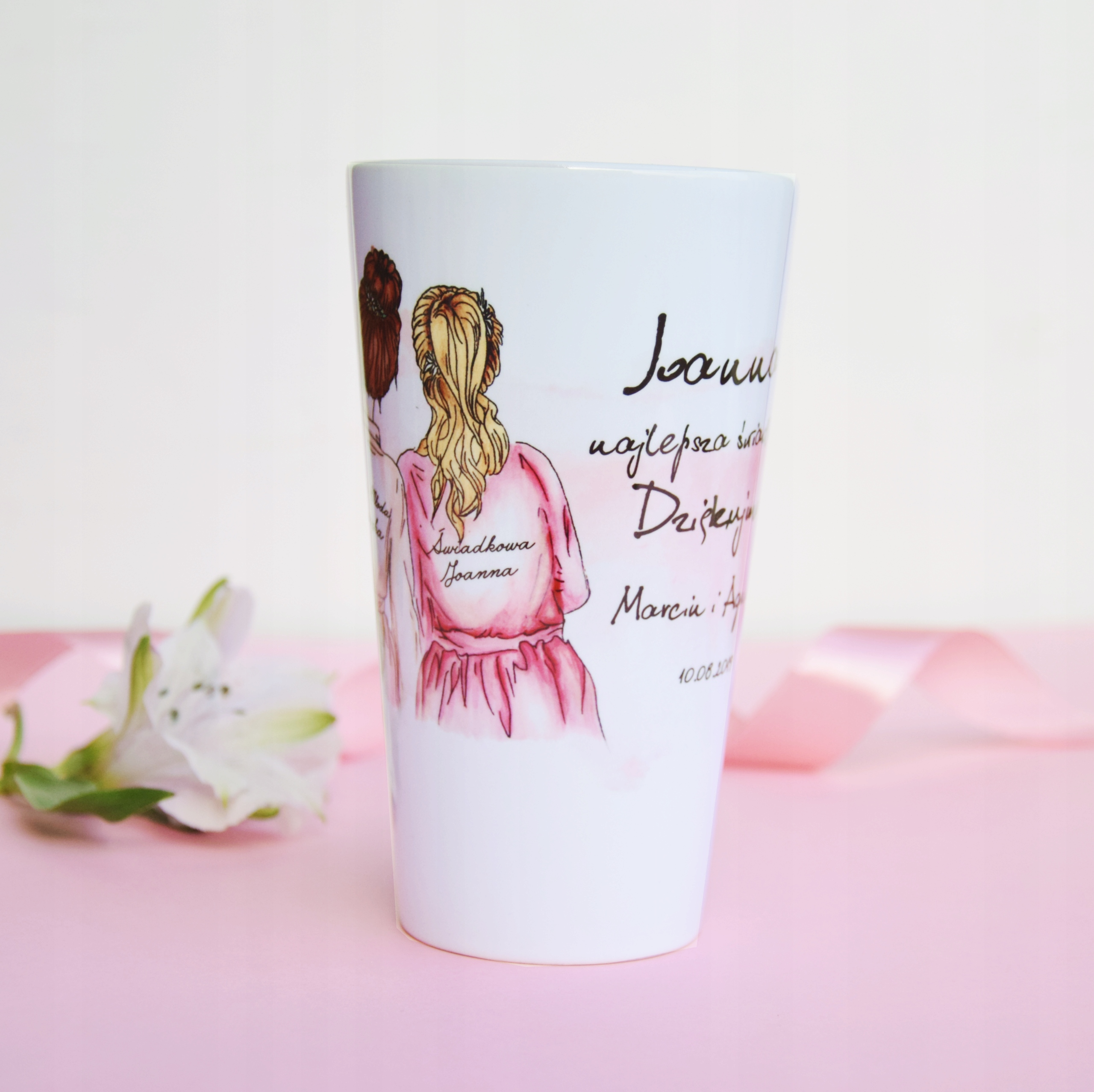 Kubek latte z indywidualnym nadrukiem to świetny prezent i pamiątka dla swojej świadkowej w ramach podziękowania za świadkowanie.