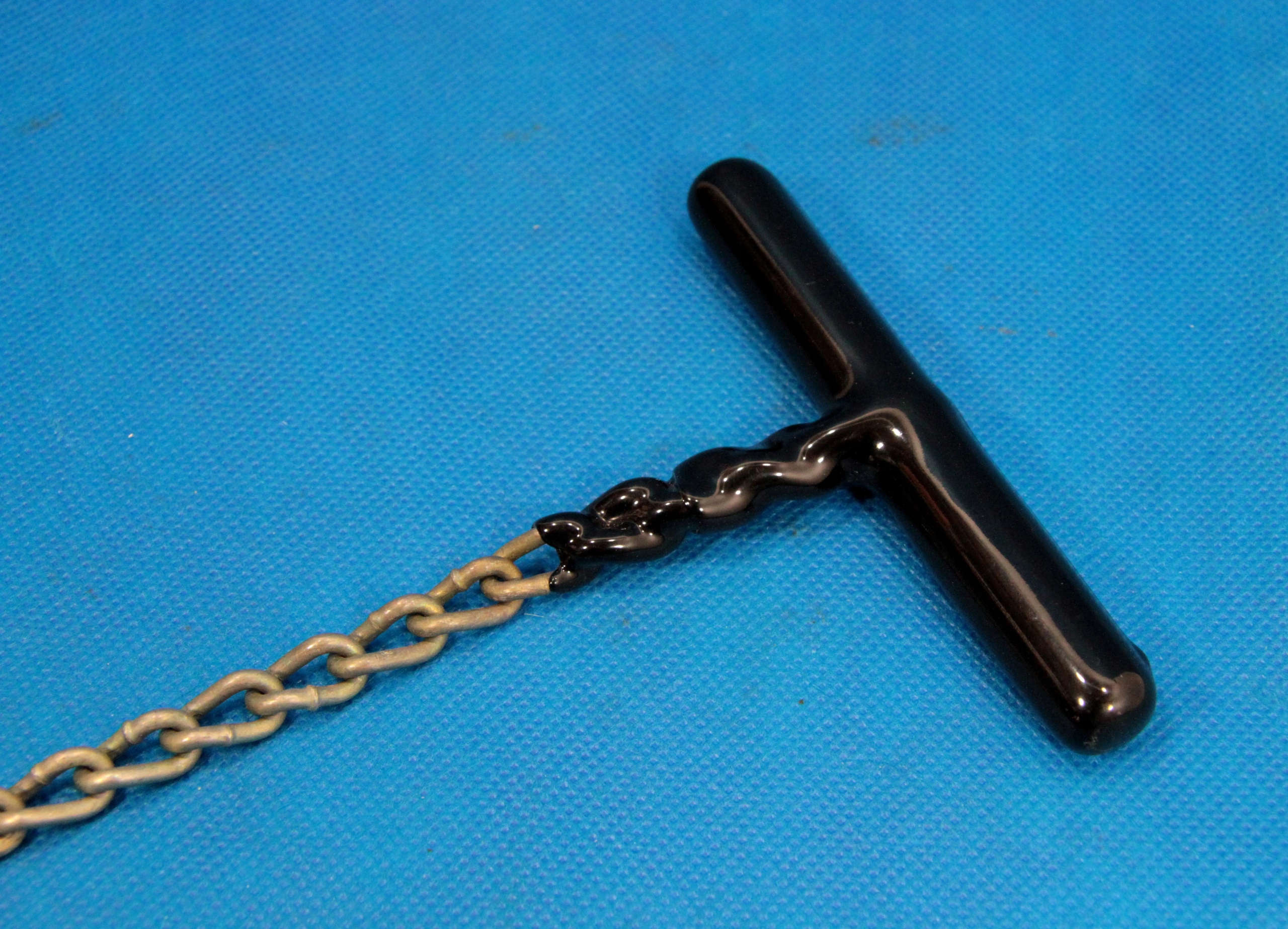 Ручка выполнена в виде ручки длиной 12 см и диаметром 1,5 см, который облит пластиком.