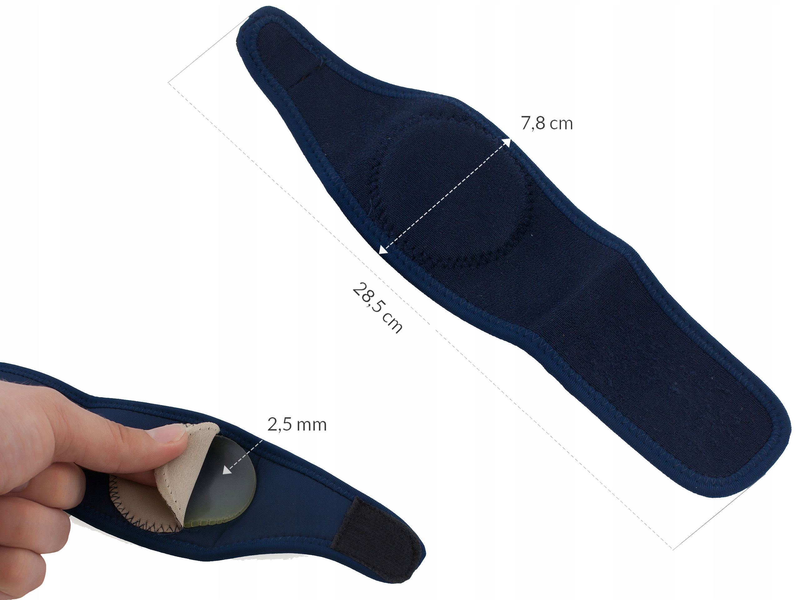 Opaskę należy założyć tak, aby żelowa poduszka znajdowała się pod stopą, dokładnie po środku stopy. Zapewni to najlepsze wykorzystanie zalet opaski.
