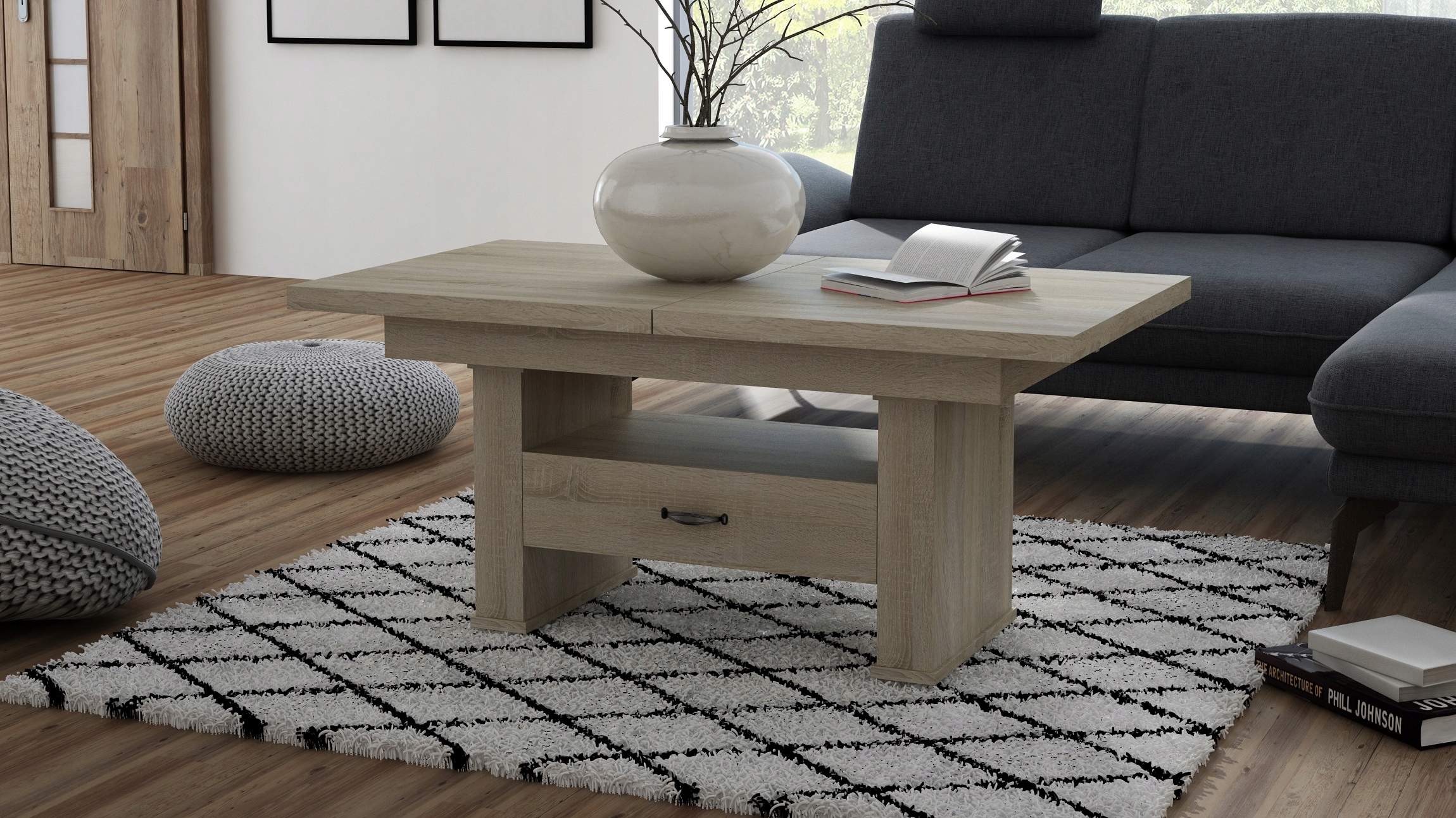 Oferujemy Państwu wysokiej jakości ławo - stół zaprojektowany z myślą o kompleksowym wykorzystaniu powierzchni małych pokoi. Ława posiada funkcję rozkładania na prowadnicy linkowej ciągnąc za jedną połówkę blatu druga rozciąga się samoczynnie oraz podnoszenia.na podnośnik czteropunktowy .Sprawdzi się zarówno jako stolik kawowy jak i stół dla całej rodziny w czasie niedzielnego obiadu.Ława jest wykonana z płyty obustronnie laminowanej. Materiał ten charakteryzuje się zwiększoną odpornością na uszkodzenia mechaniczne, zarysowania, oddziaływanie wysokich temperatur. Nie zaszkodzi mu gorąca szklanka postawiona bezpośrednio na blacie.Krawędzie blatu wykończone są obrzeżem PCV zabezpieczającym elementy ławy przed uszkodzeniami mechanicznymi.