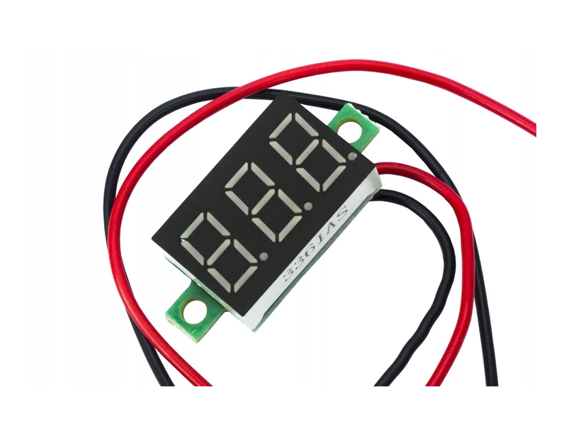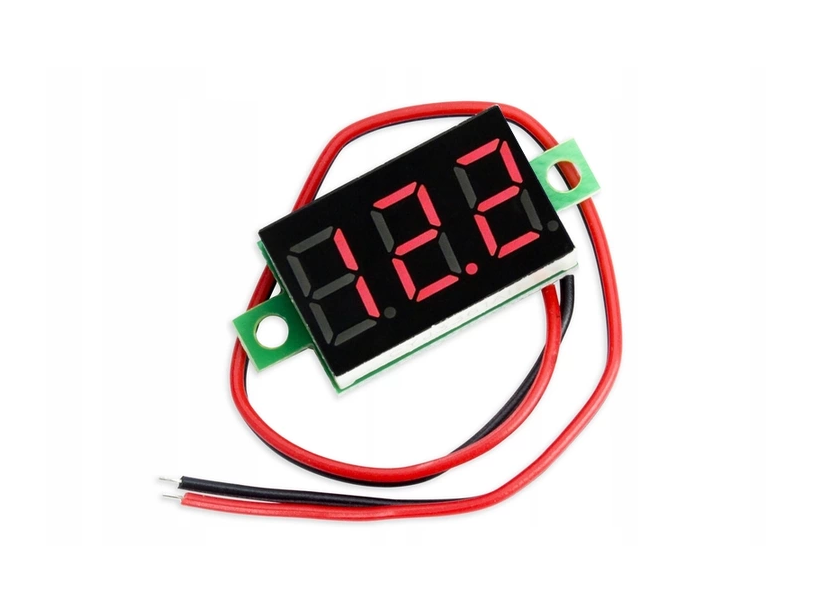 Uniwersalny moduł cyfrowego woltomierza o zakresie do 30V . Wygodny sposób na wykonanie własnego miernika w swoim urządzeniu. Dzięki dwum przewodom miernik pobiera prąd z przewodów na których wykonuje pomiar. Jest więc bardzo prosty w obsłudze a jego niewielkie wymiary pozwalają na zastosowanie go nawet w bardzo małych projektach, czy produktach. Ponieważ miernik pobiera energię z układu to nieznacznie go obciąża.