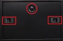 Передняя дверь оснащена дверной ручкой с замком и вентиляционными отверстиями.