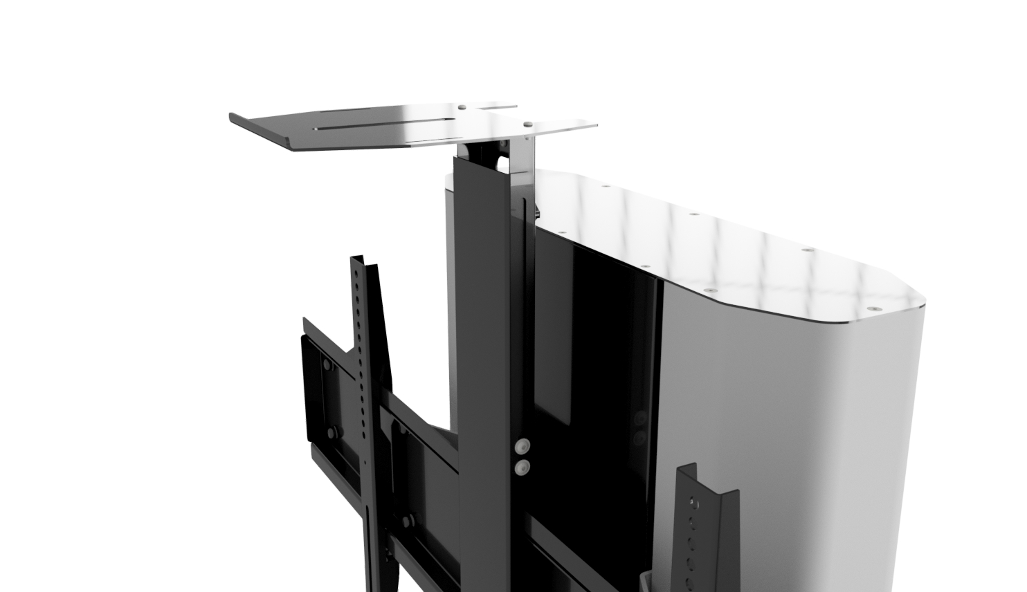 VCTX to nowoczensy wózek przystosowany do video konferencji. Jego design świetnie pasuje do nowoczesnych wnętrz. Wewnątrz wózka znajduje się przestrzeń przystosowana na komputer oraz osprzęt video. Wózek przystosowany jest ekranów od 42” do 90”. Posiada uniwersalny zakres mocowania w standardzie VESA. Standardowo do wózka dołączana jest dodatkowa półka na kameręvideo.