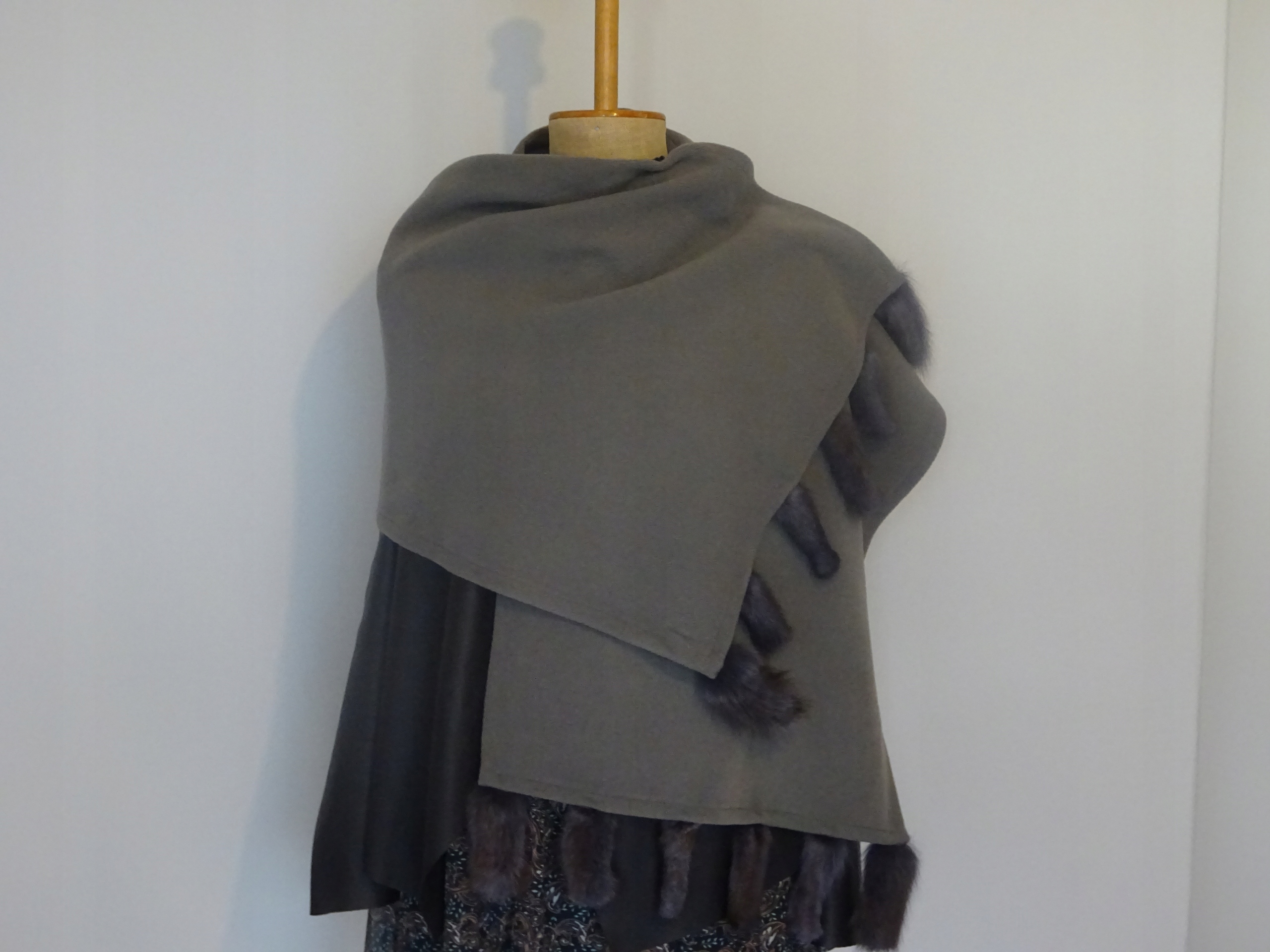 PONCZO ,NARZUTKA SZAL  ETOLA Z FUTREM LISA .