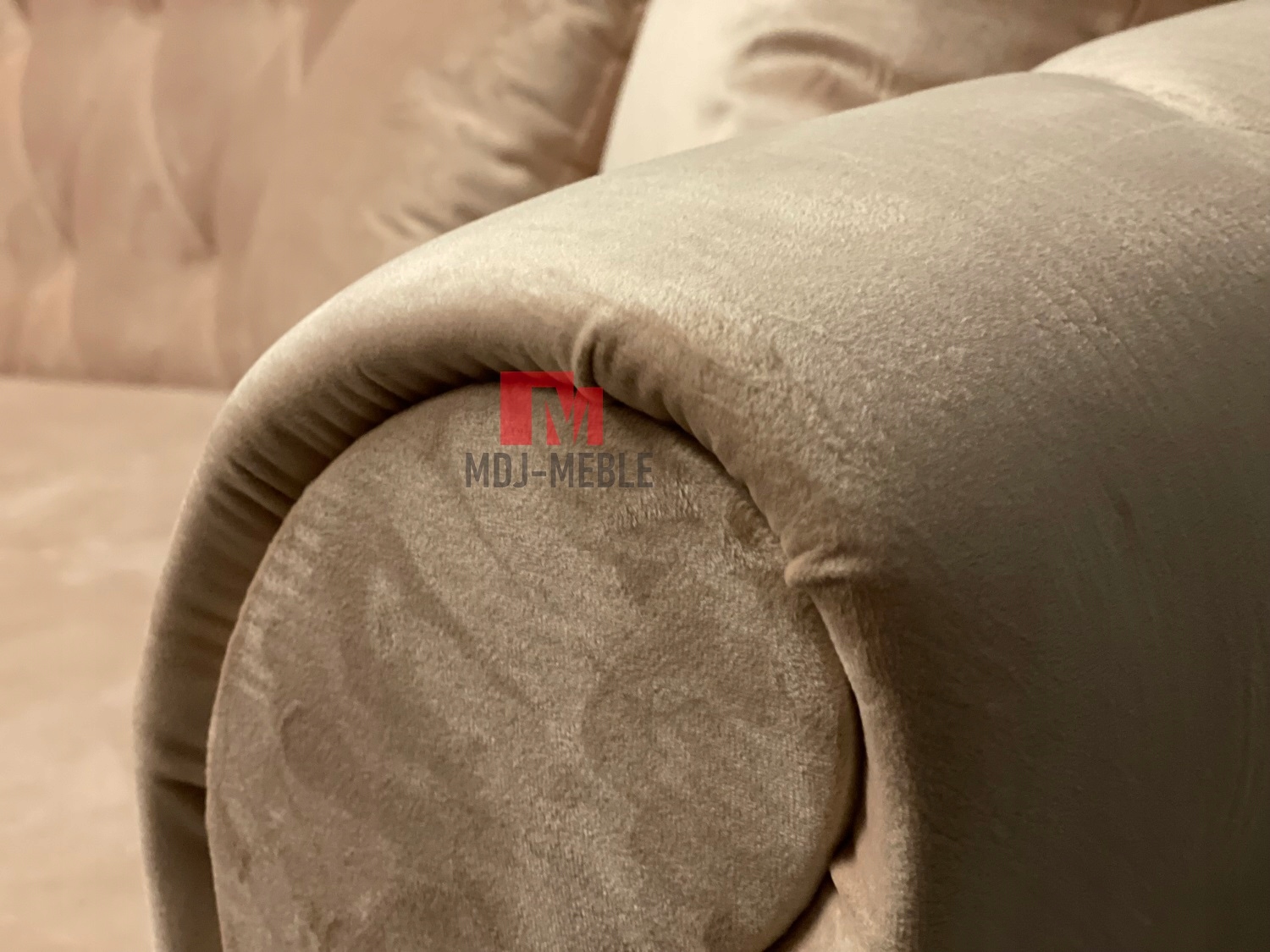 Produkt jest idealnym sposobem na nadanie w Twoim domu estetycznego , a zarazem luksusowego stylu GLAMOUR!. Zestaw posiada 2 kanapy z funkcją spania oraz pojemnikami na pościel . Zastosowany został automat wersalkowy ułatwiający rozkładanie. Kanapy stoją na stylowych cdrewnianych nogach, które są doskonałym dodatkiem mebla.