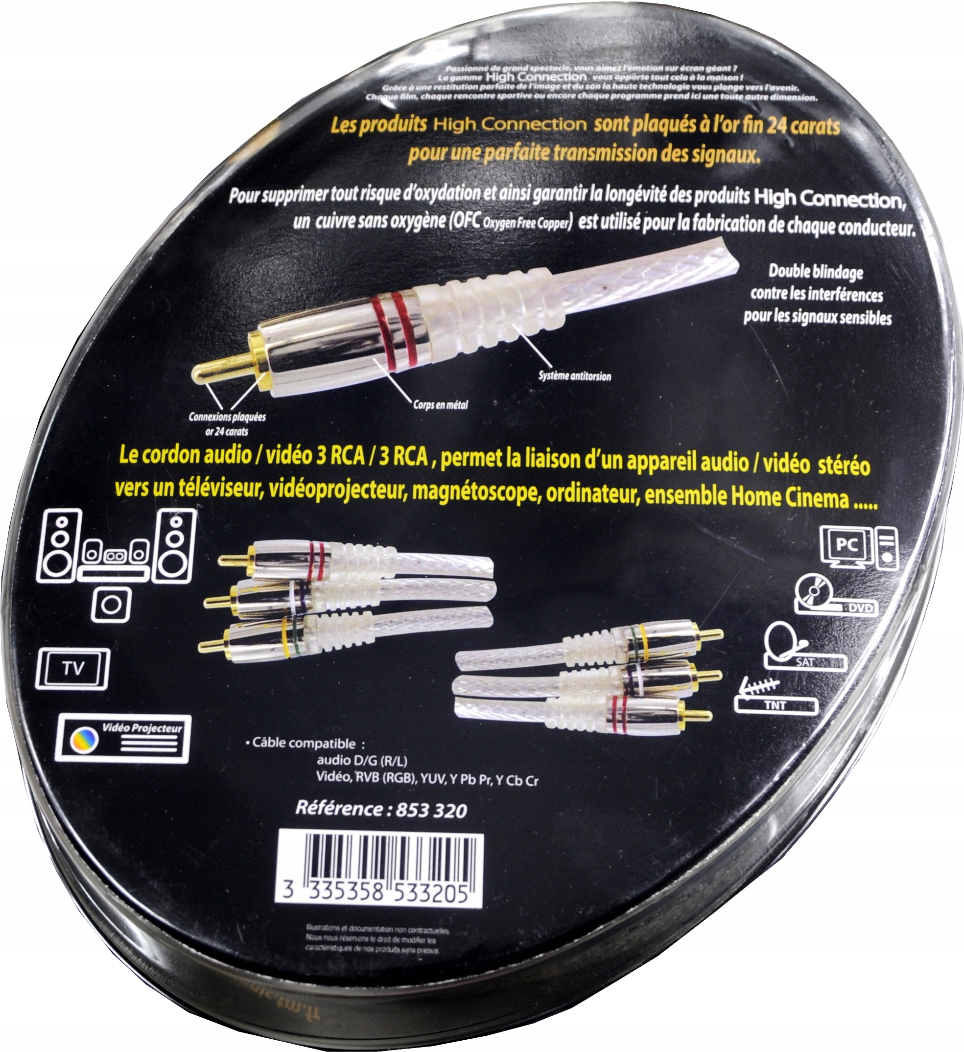 Kabel komponentowy służący do połączenia DVD, Blu-Ray lub innych odtwarzaczy wideo do systemu kina domowego lub TV.