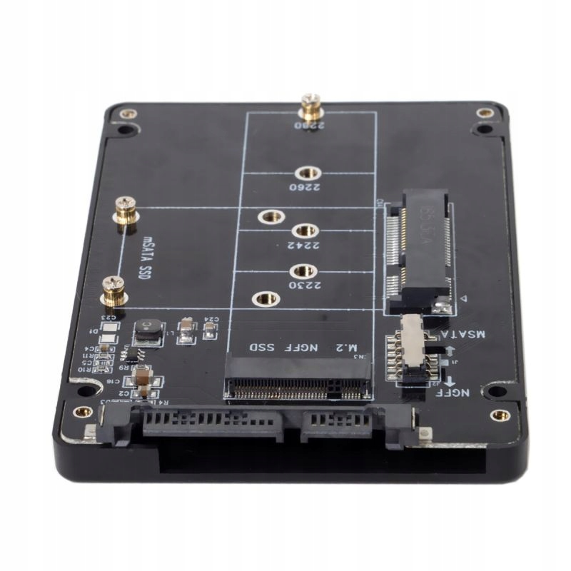 Nowy, wysokiej jakości adapter, który umożliwia umieszczenie dysku SSD: M.2 NGFF SATA lub mSATA w laptopie ze standardowym interfejsem SATA 22 Pin 2.5" lub podpięcie do komputera stacjonarnego.