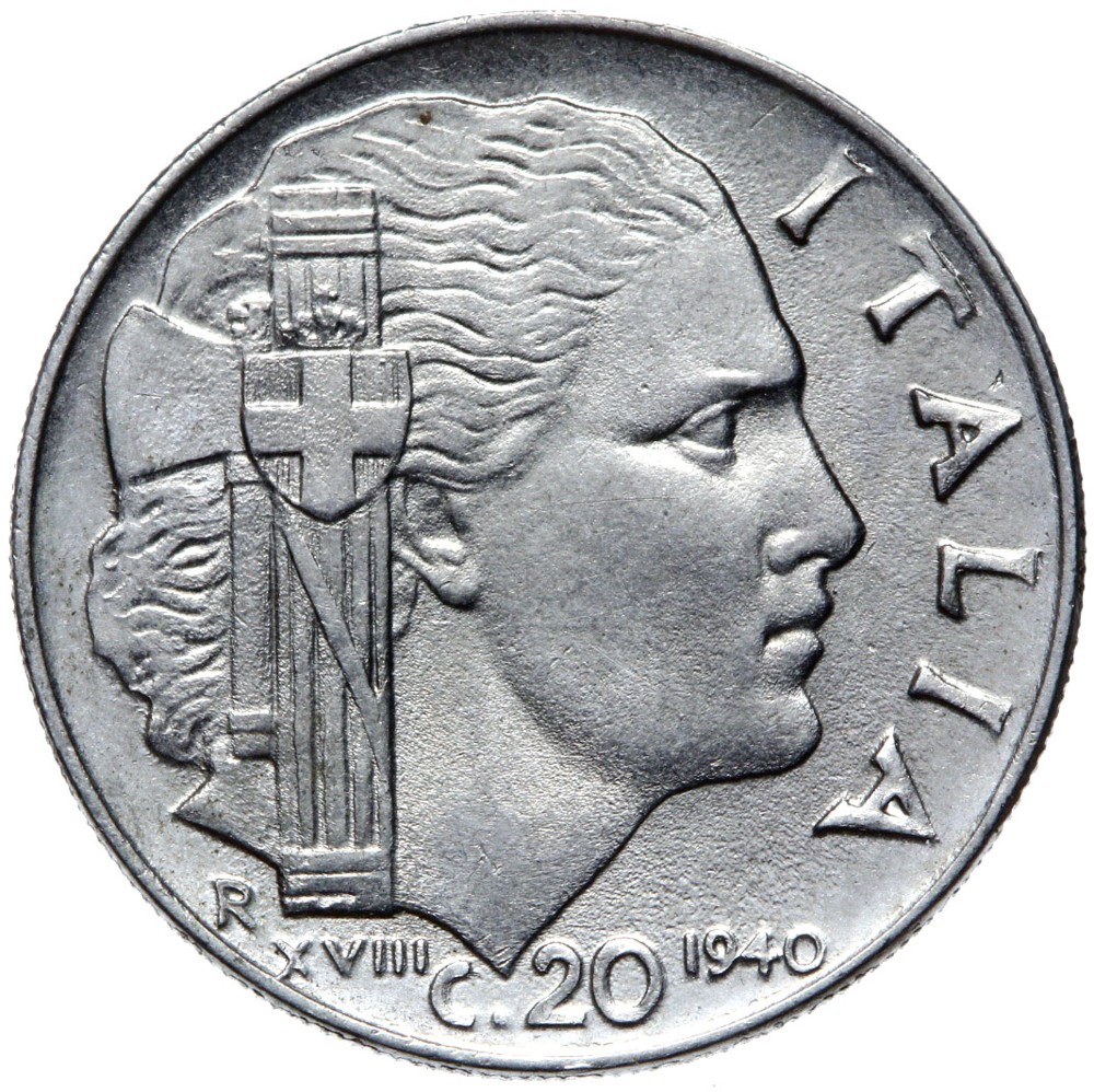 Moneta - Włochy - Wiktor Emanuel III - 20 Centesimi 1940 - rok XVIII - NIEMAGNETYCZNA.