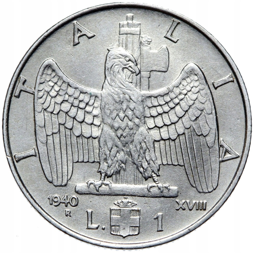 Moneta - Włochy - Wiktor Emanuel III - 1 Lir 1940 - rok XVIII - NIEMAGNETYCZNA.