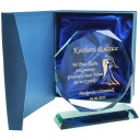 Piękne, szklane podziękowanie wykonywane jest technologią grawerowania laserowego, bezpośrednio na przedmiocie. Szklana statuetka prezentuje się doskonale dzięki unikalnemu kształtowi. Dzięki szlifom uzyskuje niezapomniane wrażenia estetyczne. Statuetka osadzona jest na solidnej podstawie z tego samego materiału, które są ze sobą połączone na stałe. Grawer wykonany jest na wysokiej jakości ploterze laserowym. Sprawia to, że grawer nawet na kilku zakupionych produktach nie różni się niczym. Dodatkowo jest ręcznie i bardzo starannie wypełniany przez rzemieślnika specjalną farbą. Złota lub srebrna farba nadaje niesamowity efekt. Tak wysokiej jakości nie znajdziesz nigdzie indziej. Osoba, która otrzyma prezent wykonany w tak wysokiej jakości, na pewno będzie zachwycona a Wy będziecie dumni, że mogliście go jej wręczyć.