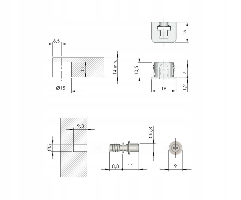 10 szt podpórka w kolorze białym - pod frez 15mm