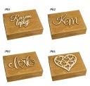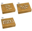 Надписи "Невеста" и "жених" и сердечки по умолчанию в цвете естественным ( даже если вы выбрали злотый цвета декоров на коробках). По запросу также могут быть окрашены, пожалуйста, в таком случае дополнительная информация при отправке формы. Нет возможности изменения цвета березы дисков и таблички внутри коробки на обручальные кольца.