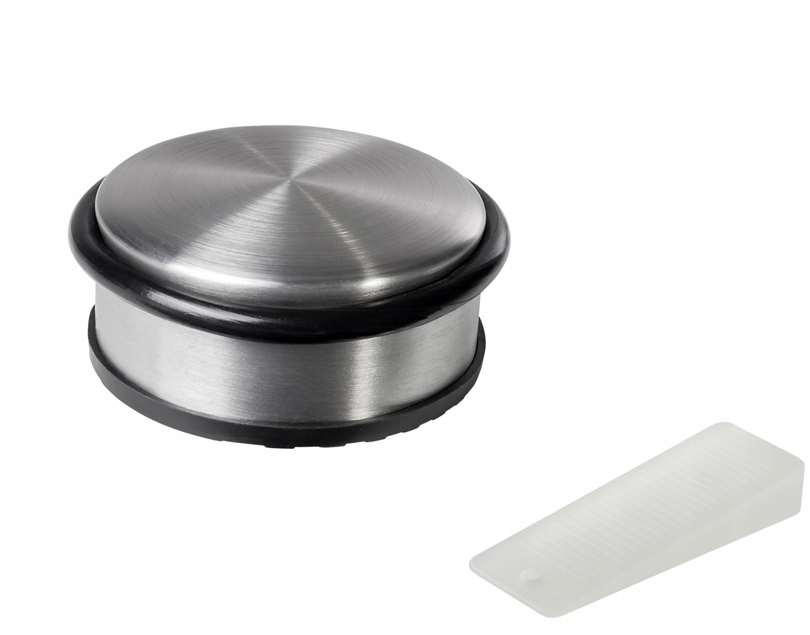 Doskonale zabezpieczy ścianę przed uderzeniem drzwi, w komplecie dodajemy klin do blokady drzwi w neutralnym transparentnym kolorze.