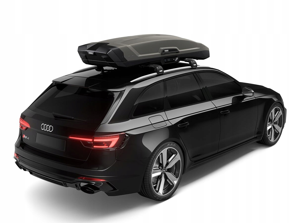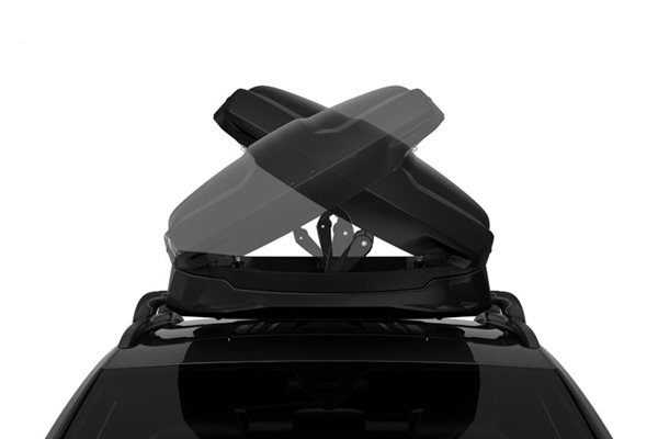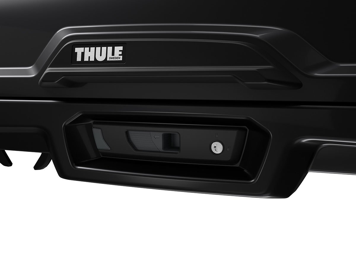 Ekskluzywny ,sportowy wzór z dyskretnym połączeniem pokrywy box bagażowy dachowy Thule Vector łączy w swoim wyglądzie wysmakowaną stylistykę z doskonałym wyposażeniem.