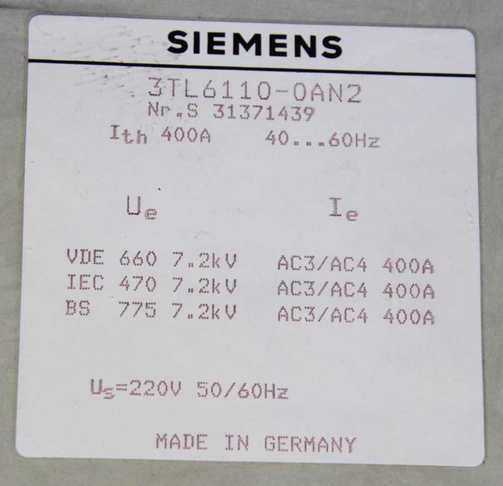 STYCZNIK PRÓŻNIOWY 4x400A 7,2kV SIEMENS 3TL6110