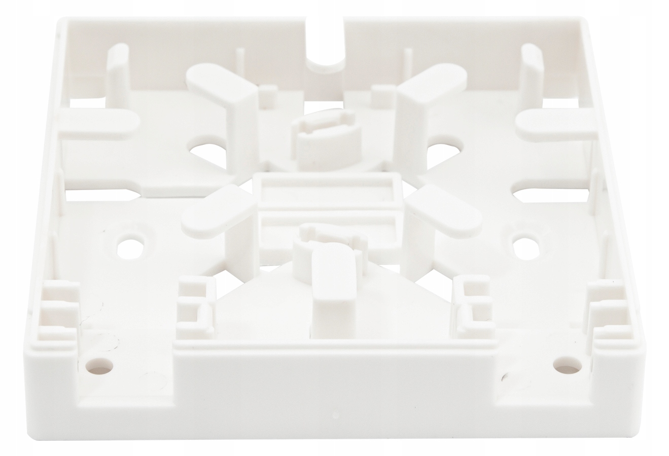 Domowa puszka zakończeniowa. Posiada miejsce do ukrycia zapasu kabla, oraz dwa otwory przystosowane do montażu adapterów.