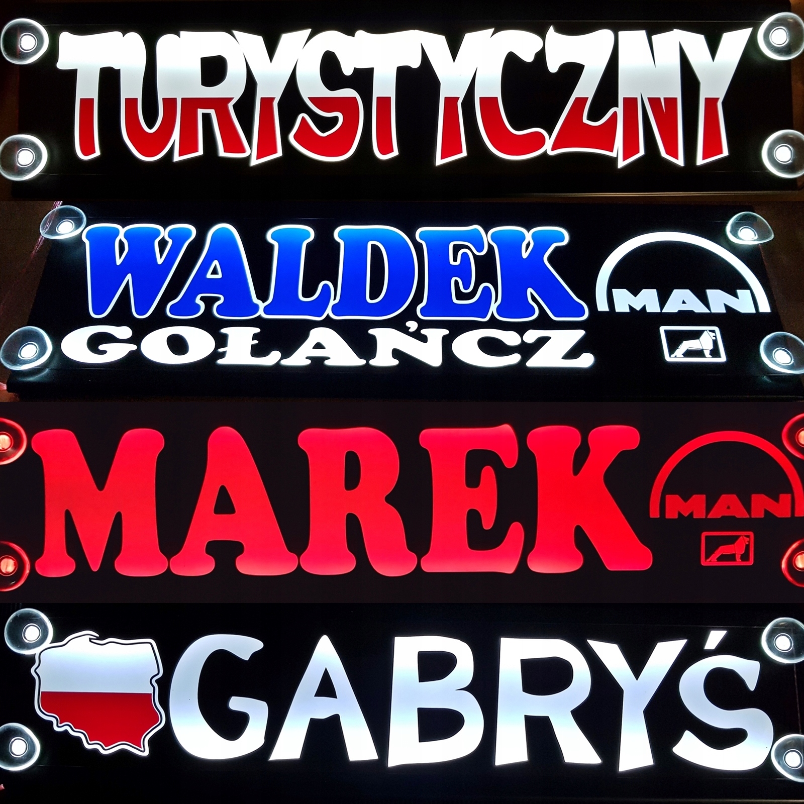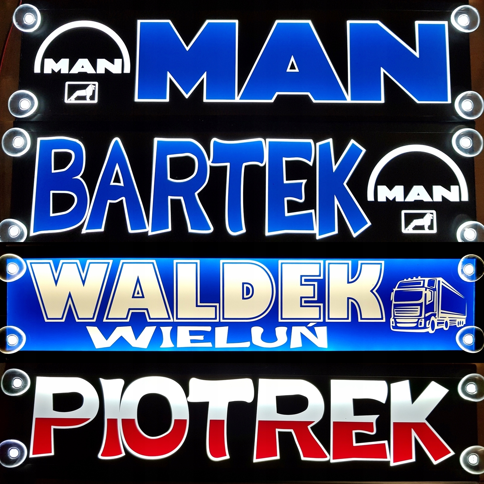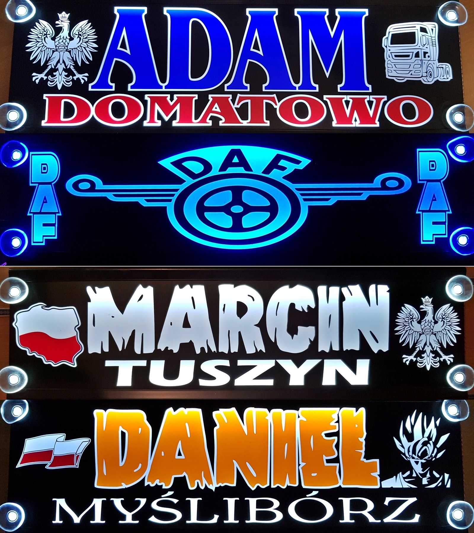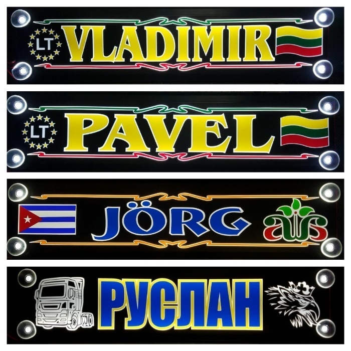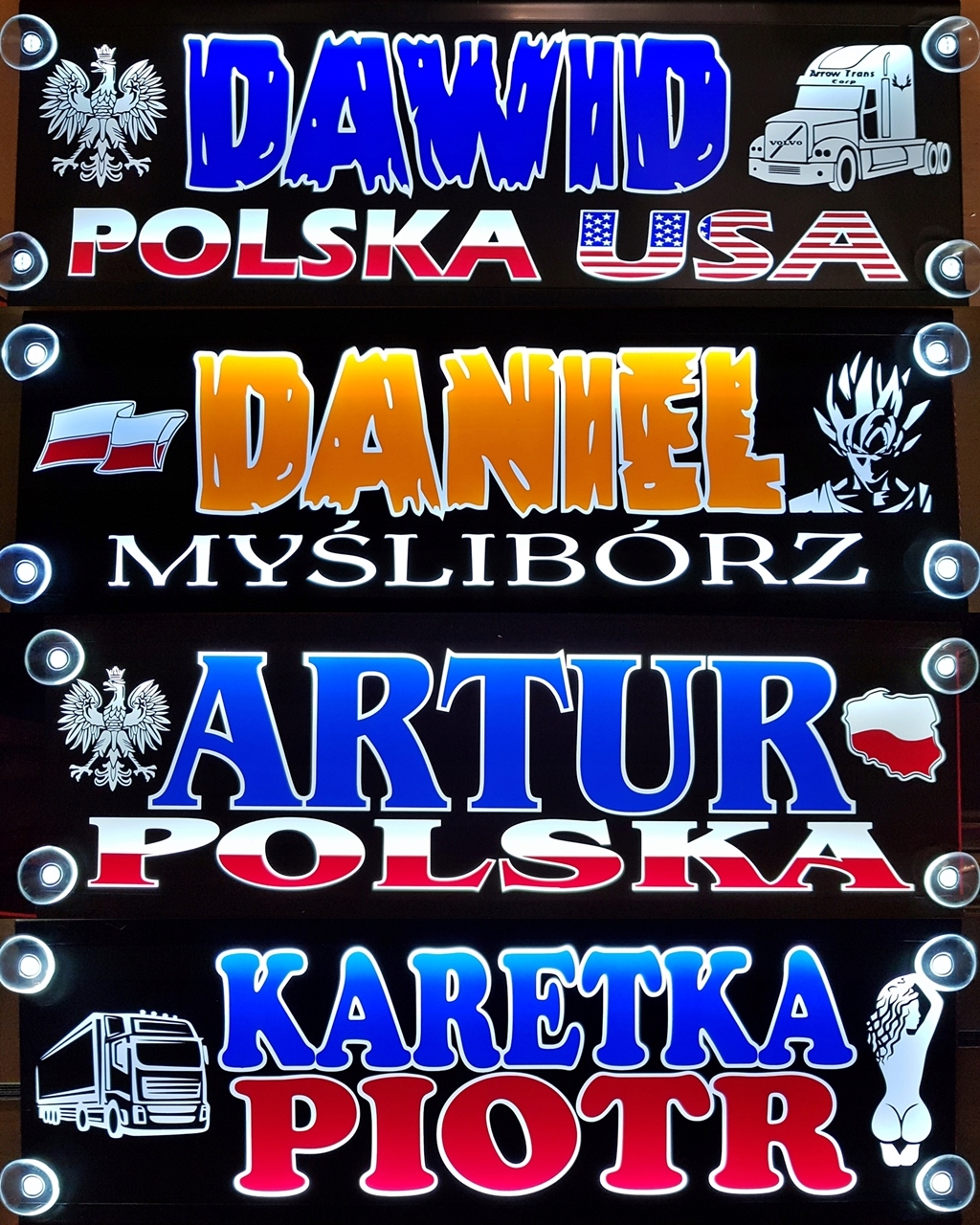 Podświetlane diodami led, tablice imienne dla kierowców.