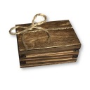 Zestaw rustykalna skrzynia pudełko na koperty i obrączki drewniana impregnowana olejem do drewna w kolorze brązowym bez otworu na koperty z napisem dziękujemy ze sklejki 3mm w naturalnym kolorze. Pudełko na obrączki ozdobione jest jutowym wypełnieniem.