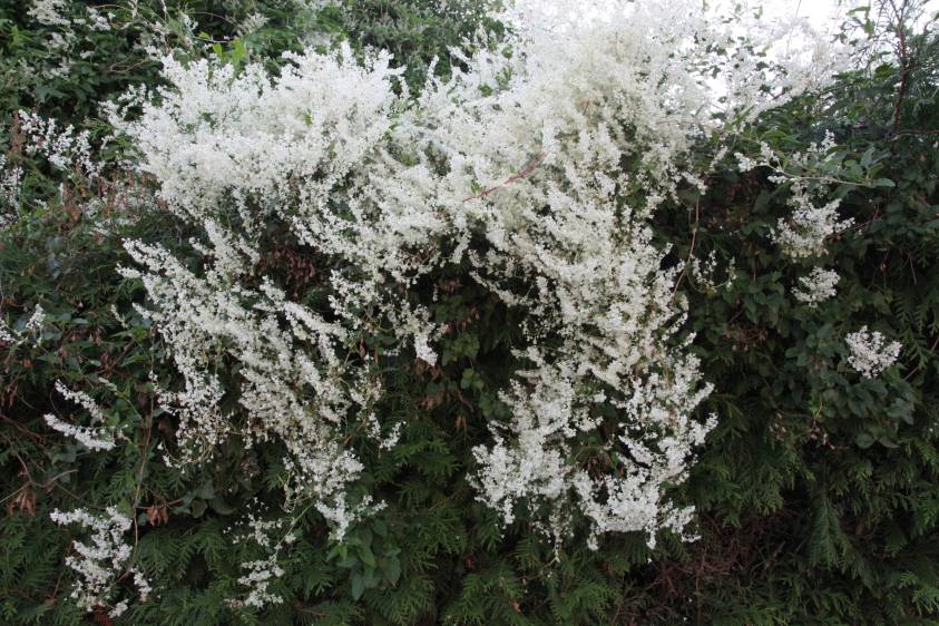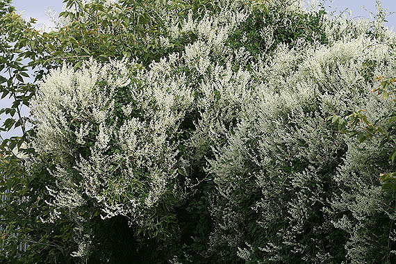 Важнейшим декоративным качеством лианы являются красивые, ароматные белые цветы. Для этого растения характерен чрезвычайно сильный рост-однолетние приросты могут быть даже до 4-6 метров! Спорыш без проблем извивается по любым опорам, заборам или деревья