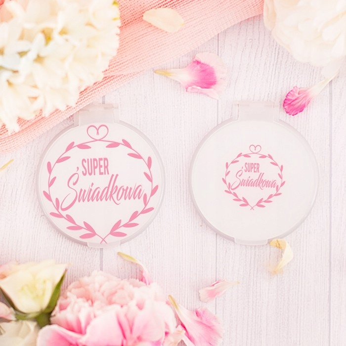 Zestaw w skrzyni tworzy: świeczka zapachowa w szklanym słoiczku, urocze, rozkładane lusterko z różowym napisem Super Świadkowa (obecnie w dwóch wzorach wysyłanych losowo), saszetka aromatyzująca o różanym zapachu oraz komplet belgijskich czekoladek!