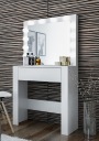 Włącznik światła znajduje się z boku lustra - jest intuicyjny w obsłudze, dyskretnie schowany.Toaletka posiada wygodna w otwieraniu szufladę z przegródkami .