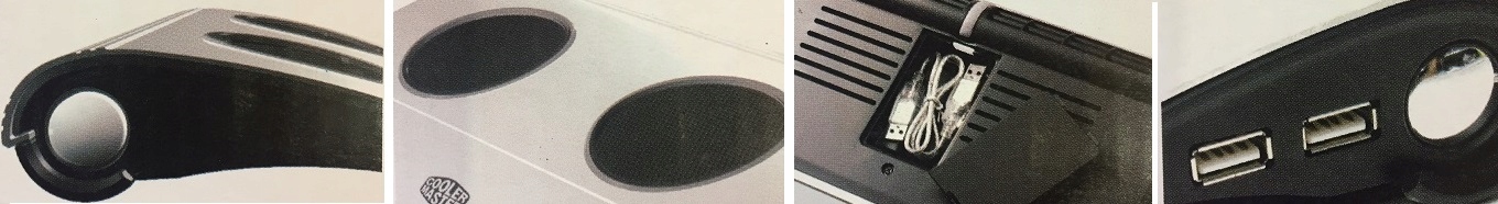 Natychmiast po podłączeniu do laptopa podkładka zasysa powietrze z dużych otworów wlotowych znajdujących się pod chłodnicą i popychac je w górę przez dwa okrągłe wyloty. Tam dwa duże 80 mm wentylatory tworzą strumień , który zmusza gorące powietrze uwięzione pod i wokół notebooka do cyrkulacji na zewnątrz, uwalniając notebooka do znacznego zasysania większej ilości chłodnego powietrza w celu wydajniejszego procesu chłodzenia.