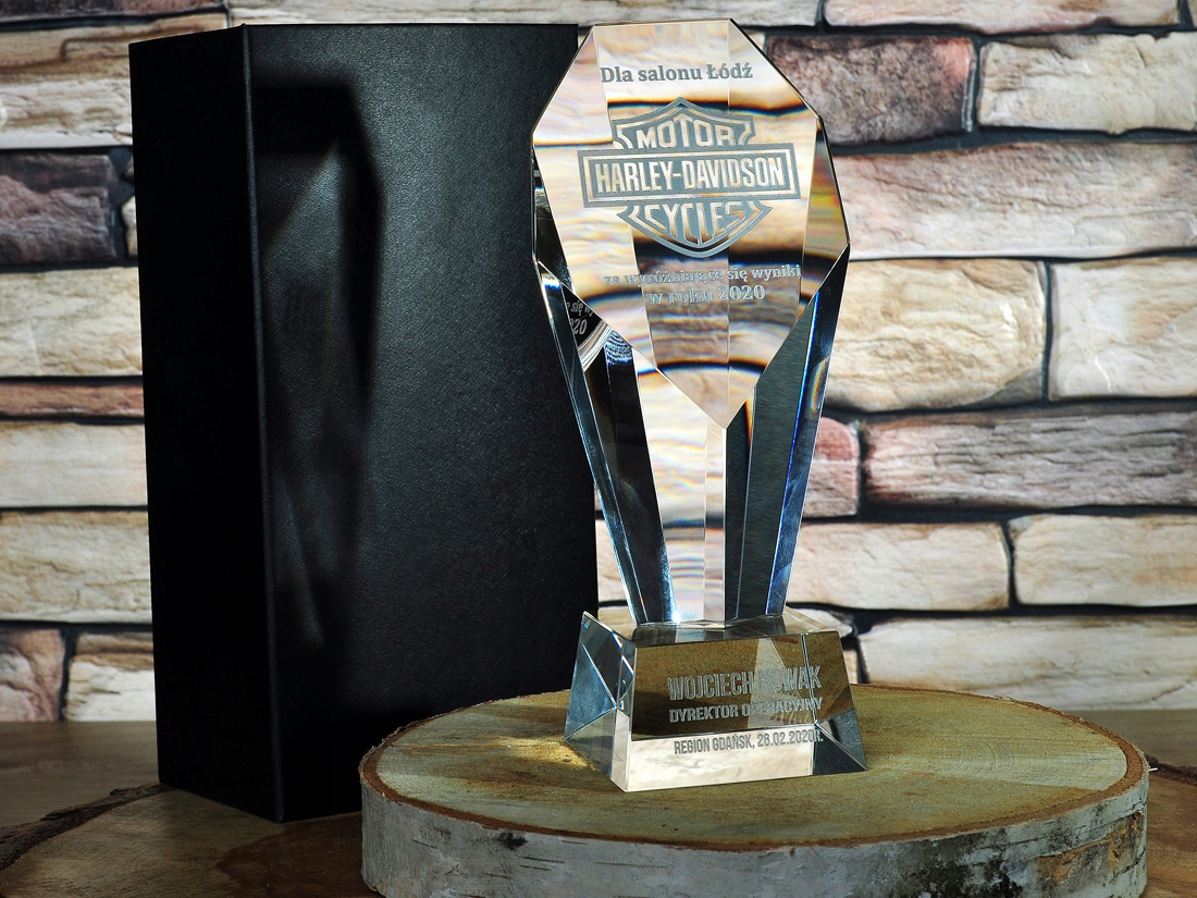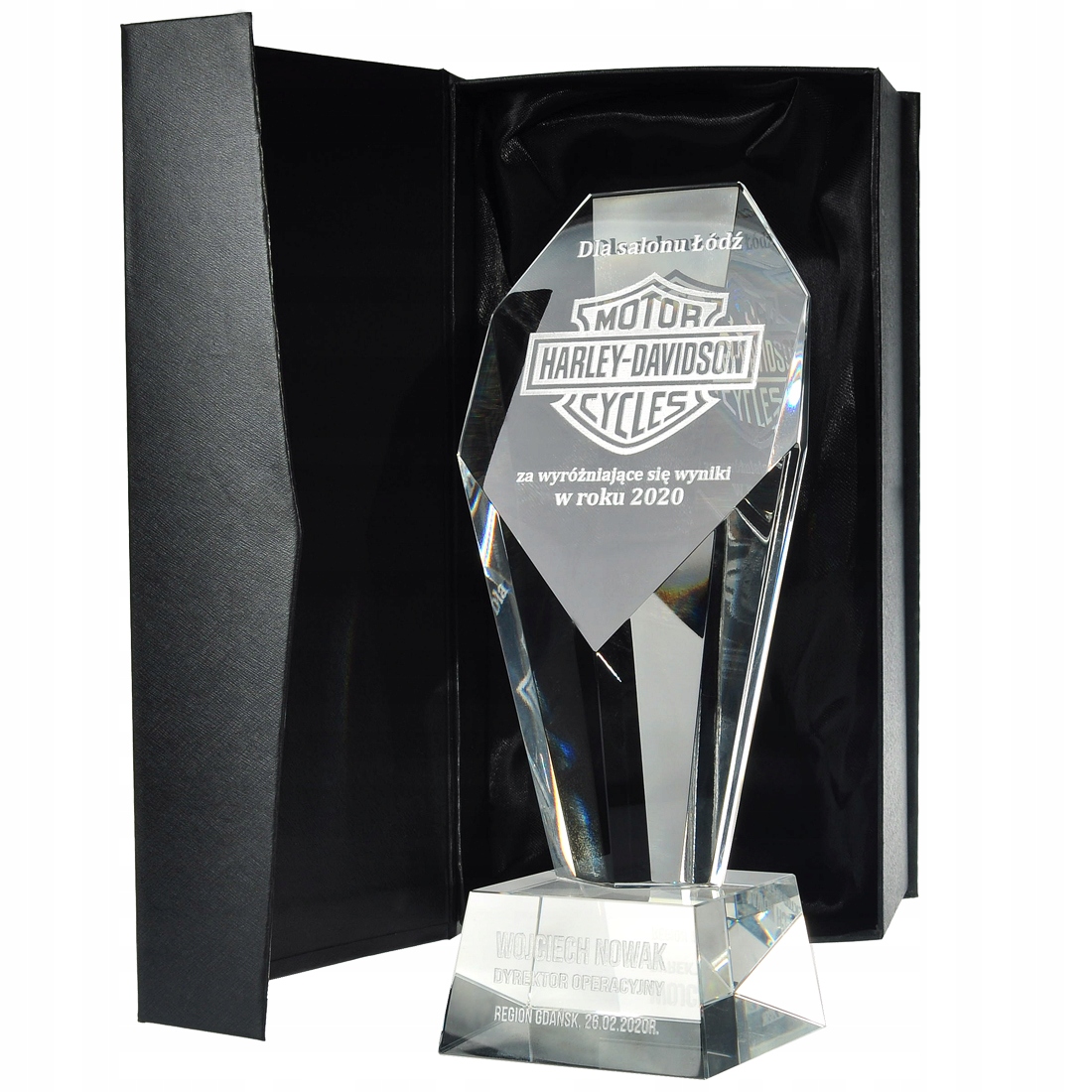 Piękne, kryształowe podziękowanie wykonywane jest technologią grawerowania laserowego, bezpośrednio na przedmiocie. Kryształowa statuetka prezentuje się doskonale dzięki unikalnemu kształtowi. Dzięki szlifom uzyskuje niezapomniane wrażenia estetyczne. Statuetka osadzona jest na solidnej podstawie z tego samego materiału, które są ze sobą połączone na stałe. Grawer wykonany jest na wysokiej jakości ploterze laserowym. Sprawia to, że grawer nawet na kilku zakupionych produktach nie różni się niczym. Dodatkowo jest ręcznie i bardzo starannie wypełniany przez rzemieślnika specjalną farbą. Złota lub srebrna farba nadaje niesamowity efekt. Tak wysokiej jakości nie znajdziesz nigdzie indziej. Osoba, która otrzyma prezent wykonany w tak wysokiej jakości, na pewno będzie zachwycona a Wy będziecie dumni, że mogliście go jej wręczyć.