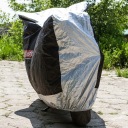 Aquatex to szybki i skuteczny sposób na zabezpieczenie motocykla czy skutera zarówno przed deszczem, jak i kurzem, śniegiem czy słońcem. To również wytrzymały materiał, podwójne szwy i otwory umożliwiające przeprowadzenie zabezpieczeń antykradzieżowych.