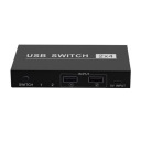 Przełącznik USB umozliwia udostępnianie urządzeń elektronicznych, takich jak dyski, myszy, klawiatury drukarki, dwóm komputerom. Nie trzeba wielokrotnie podłączać i odłączać dwóch urządzeń, wystarczy swobodnie przełączyć się, co za tym idzie poprawiając wydajność pracy.