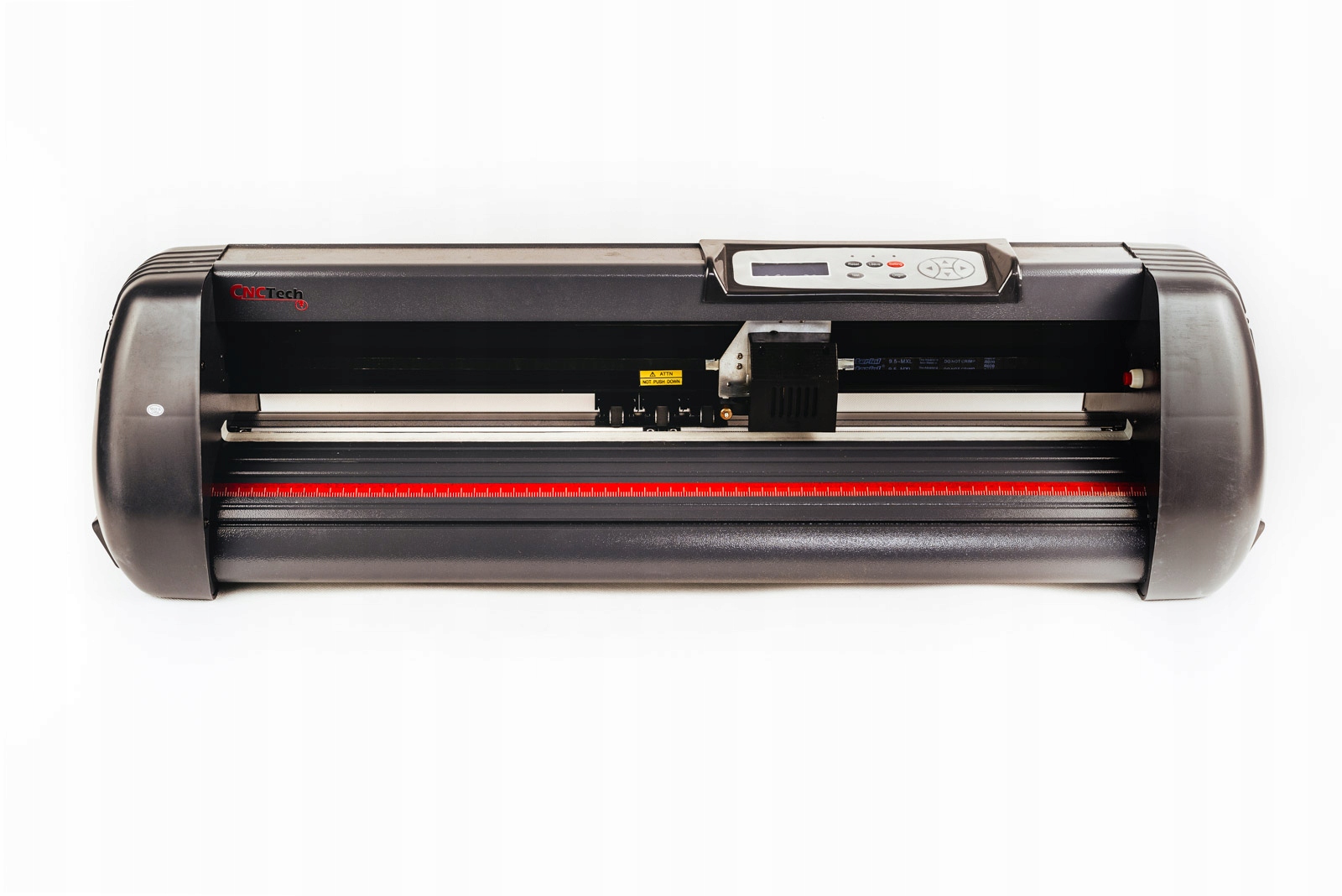 Jest wyposażony w 3 rolki dociskowe (pozwala to na precyzyjne ułożenie i pozycjonowanie materiału pod nożem) natomiast panel LCD z modułem sterującym, pozwala zmienić parametry pracy w czasie rzeczywistym.