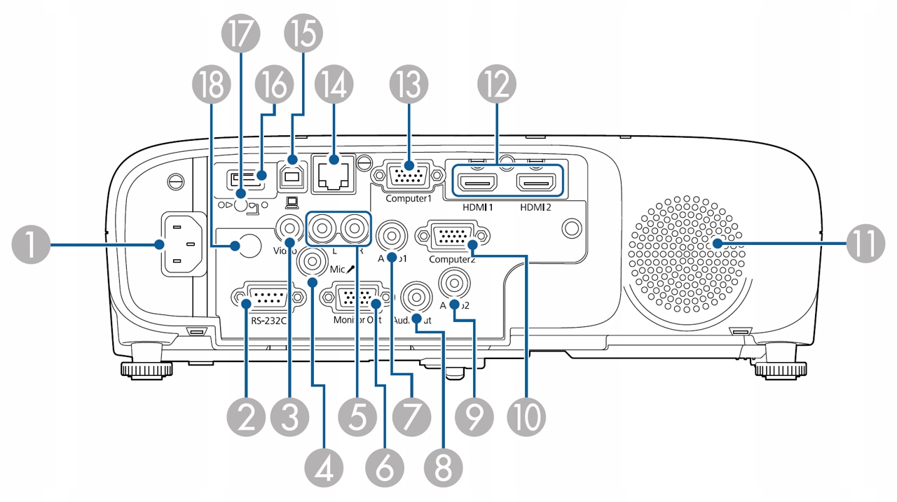 имя Audio IN, Audio OUT, D-Sub (VGA), HDMI, RJ-45, RS-232, USB, złącze kompozytowe